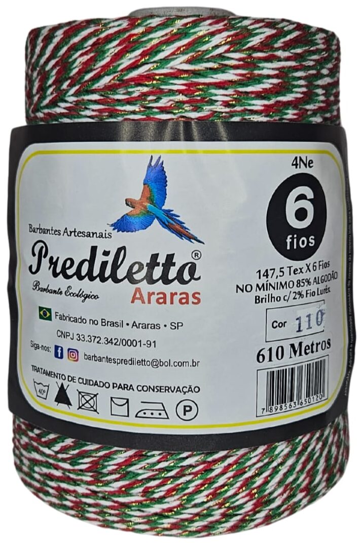 Barbante Prediletto Fio 6 Cor 110 Natalino com Brilho Dourado de 610 metros